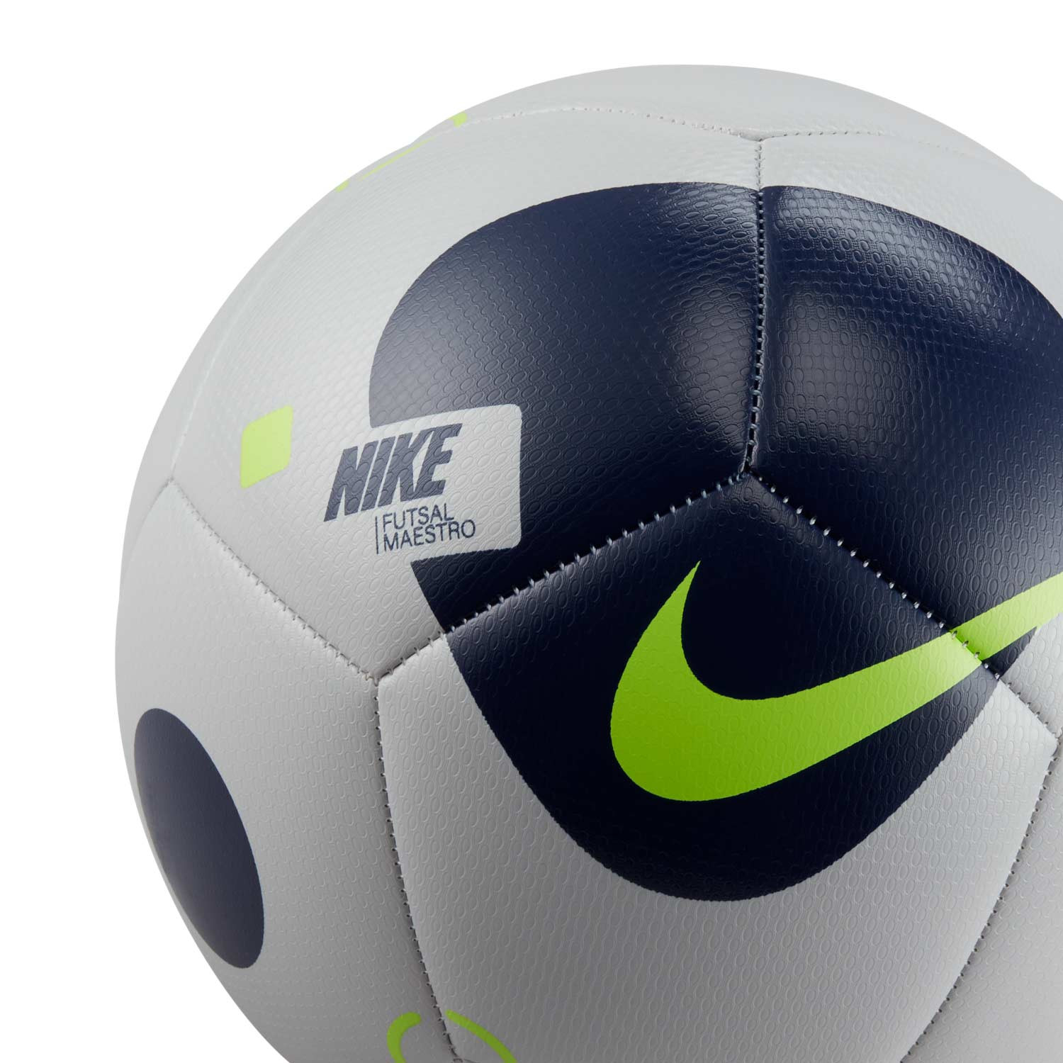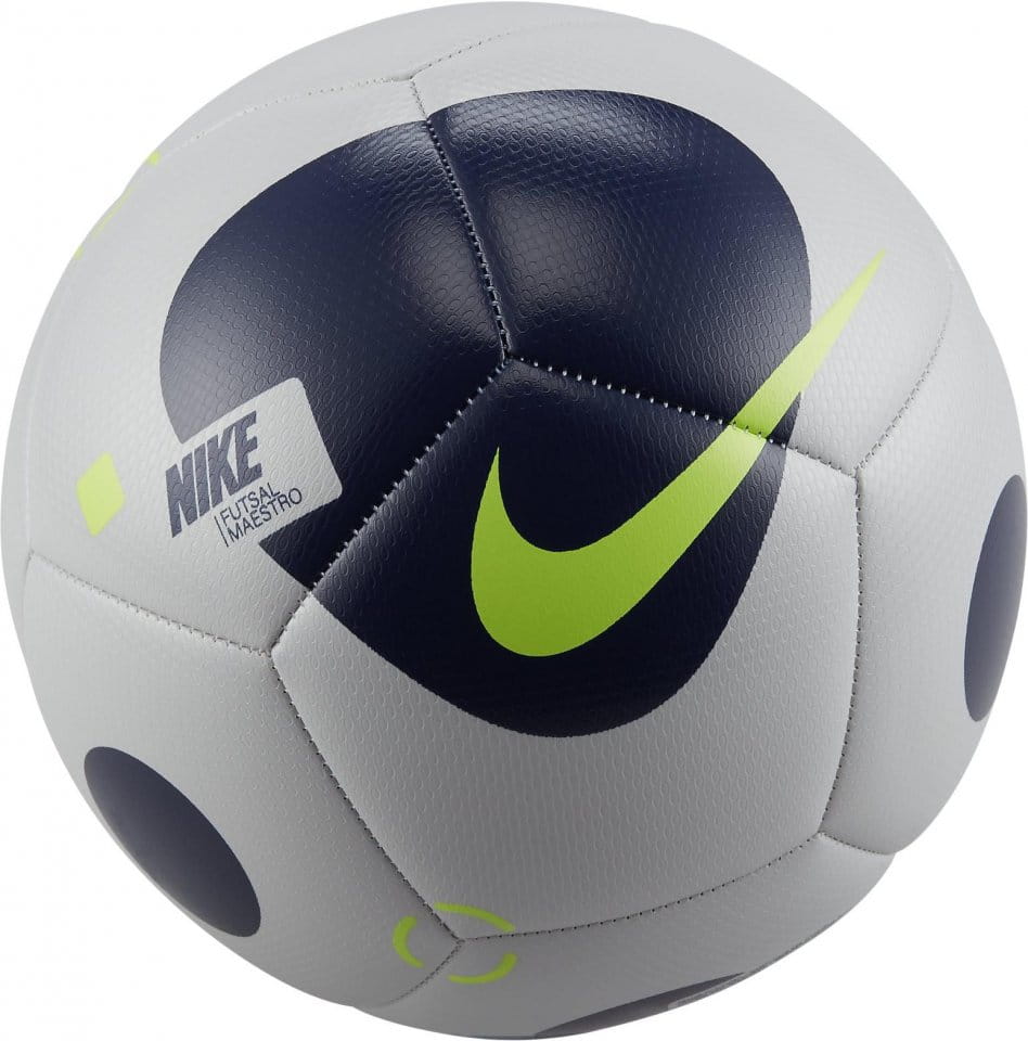 TOQUE DURADERO PARA JUGAR EN ESPACIOS REDUCIDOS. El balón de fútbol Nike Futsal Maestro proporciona un toque excepcional y un mayor control en espacios reducidos.Cuenta con una cubierta duradera y un estampado de alto contraste para que sea fácil de ver. Ventajas Confección cosida a máquina duradera y resistente a la abrasión. Cubierta texturizada con un toque excelente para ofrecer un mayor control del balón. Diseño más pequeño y grueso para reducir el rebote al jugar en espacios reducidos. Detalles del producto Tamaño y peso oficial para fútbol sala 60 % goma/15 % poliuretano/13 % poliéster/12 % EVA De importación Color mostrado: Grey Fog/Blue Void/Volt Modelo: DM4153-097