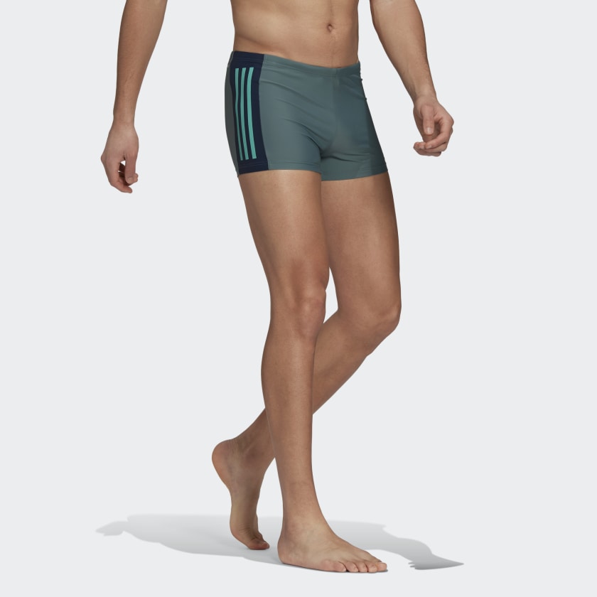 CÓMODO BAÑADOR FABRICADO CON MATERIALES RECICLADOS. Salta a la piscina y siente que tus preocupaciones diarias se disuelven en el agua. Estos bañadores adidas convierten la natación en 45 minutos de felicidad. Están hechos de un tejido resistente al cloro con fibras procedentes de redes de pesca recicladas y otros productos a base de nailon. Las 3 bandas contrastantes en un lado acentúan el aspecto deportivo. Confeccionado en tejido resistente al cloro con fibras ECONYL®. SOBRE EL MODELO Cintura elástica con cordón Infinitex Fitness Eco Jersey: 78% nailon reciclado, 22% elastano Forro de punto suave Tejido suave y ultrasuave Tejido resistente al cloro Protección UV 50 Material Primeblue Color mostrado: Hazy Emerald / Crew Navy Número de modelo: GM3544