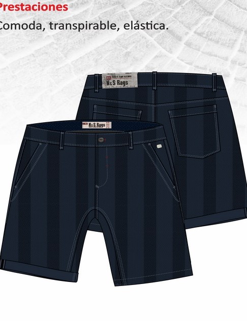 Descripción: Bermuda estampada, cintura normal con cierre de botón, bolsillos delanteros en diagonal, en parte trasera dos bolsillos parche. Composición: 99% Algodón- 1% Elastán 180grs. Prestaciones: Cómoda, transpirable, elástica. Colores: Marino- Negro Verde Abeto- Negro