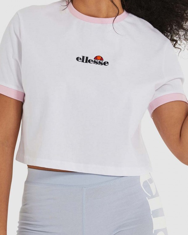Derla Tee Artículo nº: SGJ11884 Fabric: 100% Cotton Crop fit with contrast circular folded rib collar and cuffs Embroidered ellesse logo to chest with woven tab to sleeve COMPOSICIÓN 100% Algodón LAVADO Leer la etiqueta de producto.