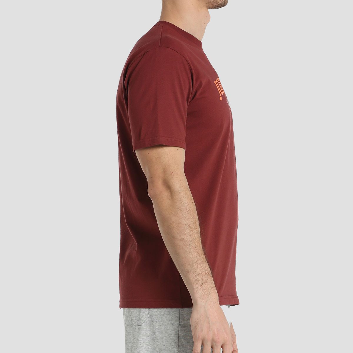Camiseta ligera de algodón con cuello redondo de canalé. Gráfico en el pecho y tapa costuras interior en el cuello. Composición: 100% algodón, single jersey.