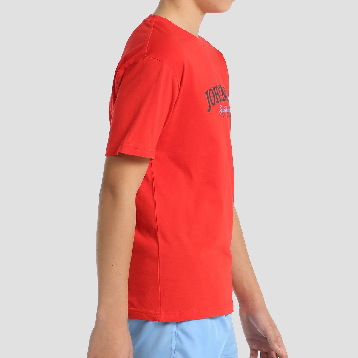 Camiseta ligera de algodón con cuello redondo de canalé. Gráfico en el pecho y tapa costuras interior en el cuello. Composición: 100% algodón, single jersey.