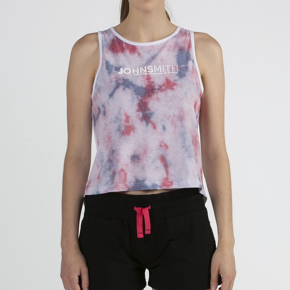 COMPOSICION: 50% poliéster-38% algodón-12% viscosa. Single jersey. DETALLES: Tirantes. Espalda lisa y con abertura inferior. Tejido estampado. Gráfico en el pecho.