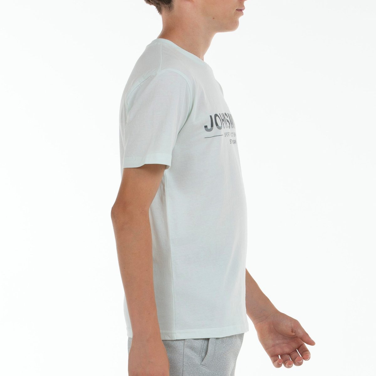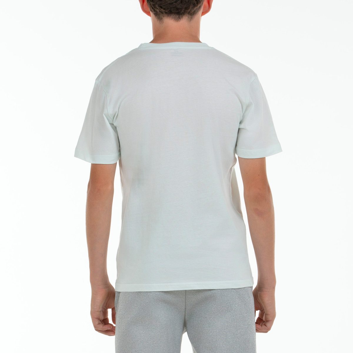 DESCRIPCIÓN Camiseta en algodón, con cuello a la caja de canalé. Manga corta y gráfico posicional en el pecho. Tejido en single jersey.