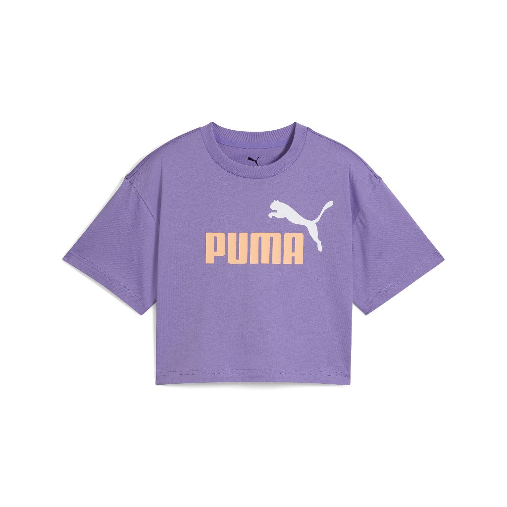 Cómoda camiseta de algodón fácil de combinar para tus outfits. Cuello redondo y acanalado. Logo Puma estampado en el pecho en color rosa y blanco. Fabricada con al menos un 20 % de algodón reciclado. Materiales: 80% algodón, 20% poliéster.