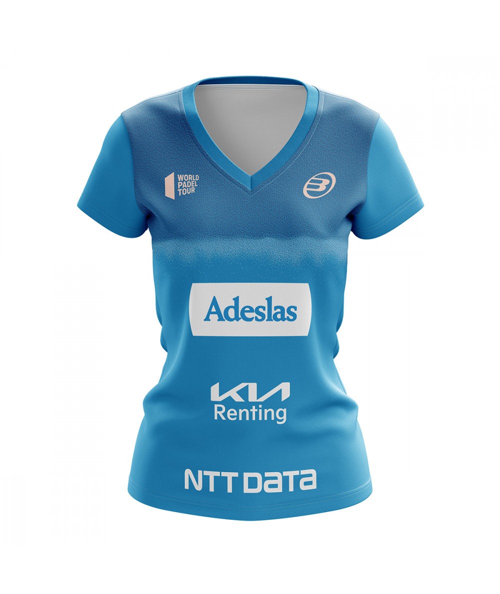 Camiseta Oficial de Pádel de nuestra jugadora Alejandra Salazar. Tallas: XS-XXL Composición: 92% poliéster-8% elastán. Color: Cyan.