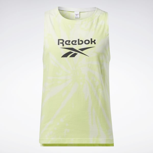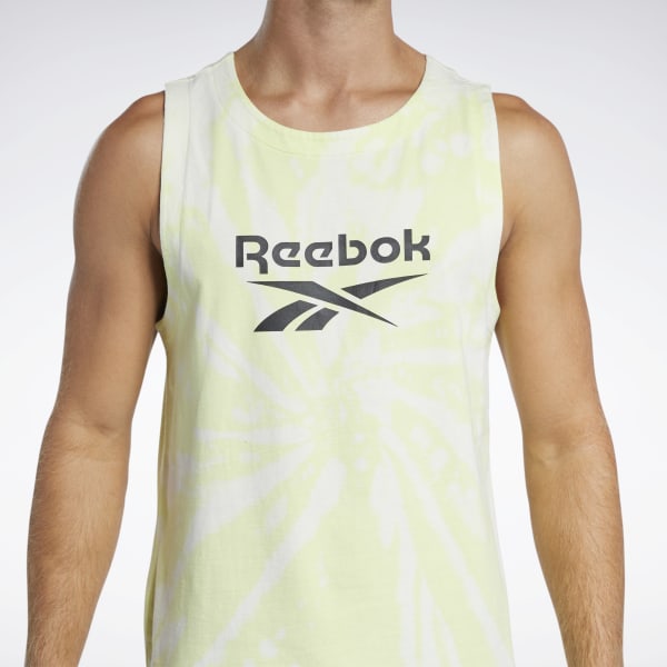 UNA CAMISETA DE ALGODÓN SIN MANGAS CON UN LOOK TIE-DYE FRESCO. Este verano dalo todo con esta camiseta sin mangas Reebok para hombre. Porque cuando apuestas por un estampado tie-dye, no tienes nada que perder. Su corte holgado le confiere un estilo relajado. Cárgate de buenas vibraciones. DETALLES Corte holgado. Cuello redondo. Punto simple, 100 % algodón. Estampado tie-dye de espiral. Color del artículo: Semi Energy Glow Número de artículo: GL2315