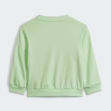 INÍCIALE EN EL ESTILO DEPORTIVO Los peques suelen llevar un ritmo imparable hasta que se cansan y se duermen. Este chándal adidas le ofrece la comodidad que necesita de principio a fin del día. Se ha confeccionado en un tejido con mezcla de algodón muy suave al tacto. La sudadera presenta un cuello redondo y botones a presión en el hombro que facilitan la tarea de ponérsela y quitársela. La cintura del pantalón le proporciona confort y un ajuste seguro para sus aventuras. Este producto contiene al menos un 70% de materiales reciclados y renovables. Corte clásico con cintura de talle medio Cuello redondo de canalé con botones a presión en el hombro Felpa 70% algodón / 30% poliéster reciclado Sudadera: puños de canalé Pantalón: cintura elástica con cordón Pantalón: puños de canalé Color del artículo: Semi Green Spark / White Número de artículo: IS2506
