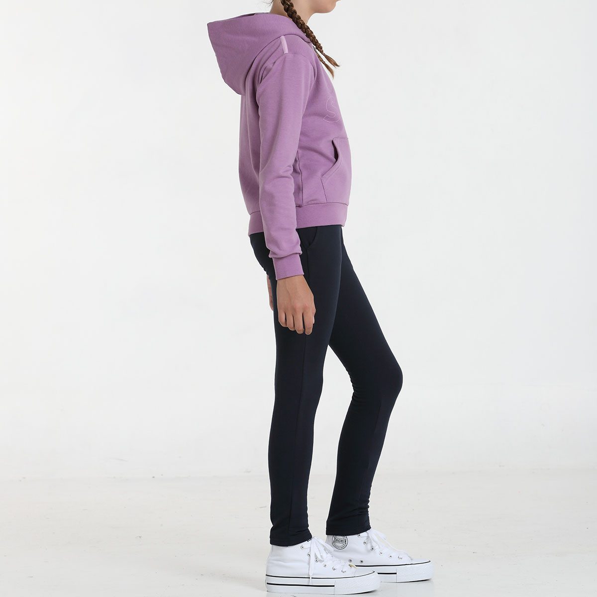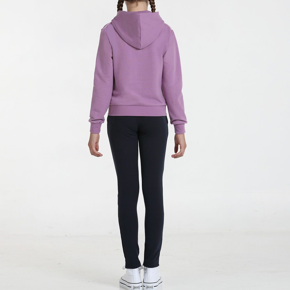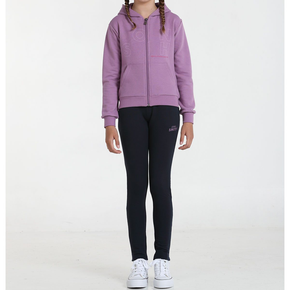 Chándal de niña en felpa elástica. Chaqueta abierta con capucha. Print en el delantero. Pantalón slim. Bolsillos laterales. Logo corporativo en la pierna. Composición: 63% poliéster/34% algodón, elastic french terry. Tejido técnico: Stretch, que favorece la adaptabilidad y la elasticidad sin perder la forma.