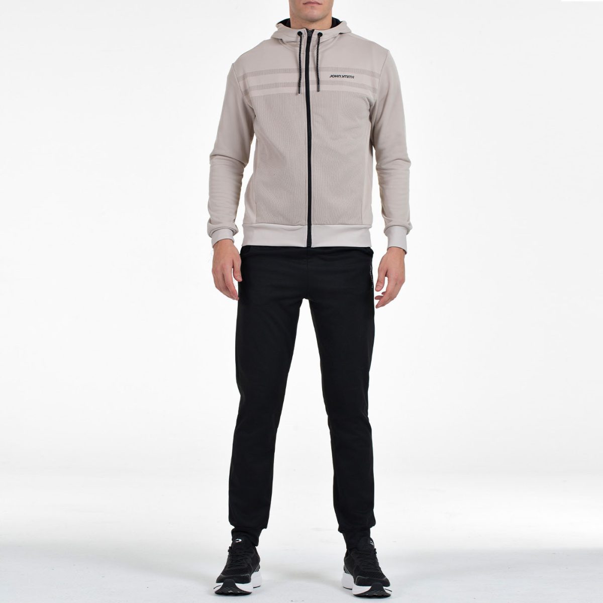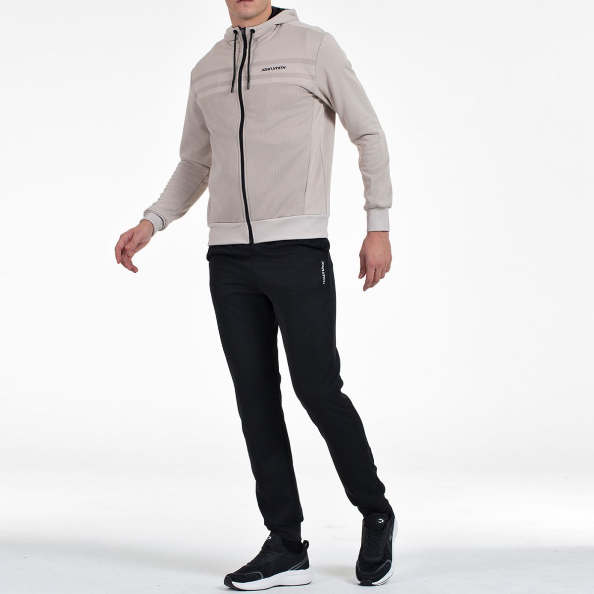 Chándal de interlock perchado con capucha: diseño vanguardista y máxima comodidad. Luce un estilo único con este chándal de interlock con interior perchado, equipado con capucha para mayor protección y confort. La chaqueta presenta un moderno estampado gráfico geométrico en la parte delantera, combinado con prácticos bolsillos con cremallera y el logo corporativo que destaca calidad y personalidad. El pantalón cuenta con cinturilla ajustable, bolsillos funcionales y puños de canalé que garantizan un ajuste perfecto y comodidad durante todo el día. Perfecto para quienes buscan un look deportivo con carácter y detalles que marcan la diferencia. Composición: 100% poliéster intelrock, backside brushed.