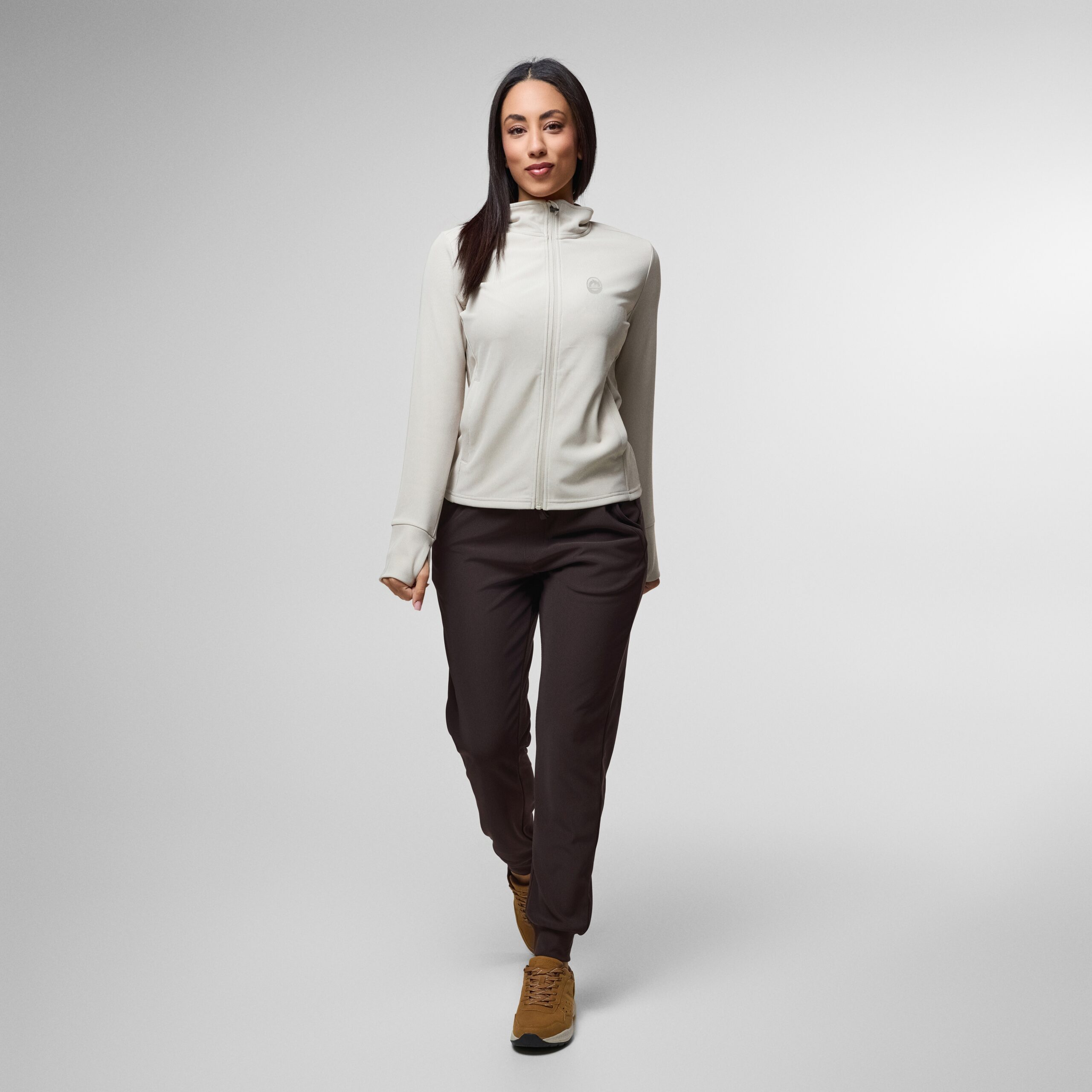 Descripción Chándal para mujer con diseño cómodo y funcional. Incluye chaqueta con cremallera completa, bolsillos laterales y abertura en los puños para el dedo. El pantalón presenta ajuste en los tobillos y bolsillos laterales. Composición 100% poliéster.