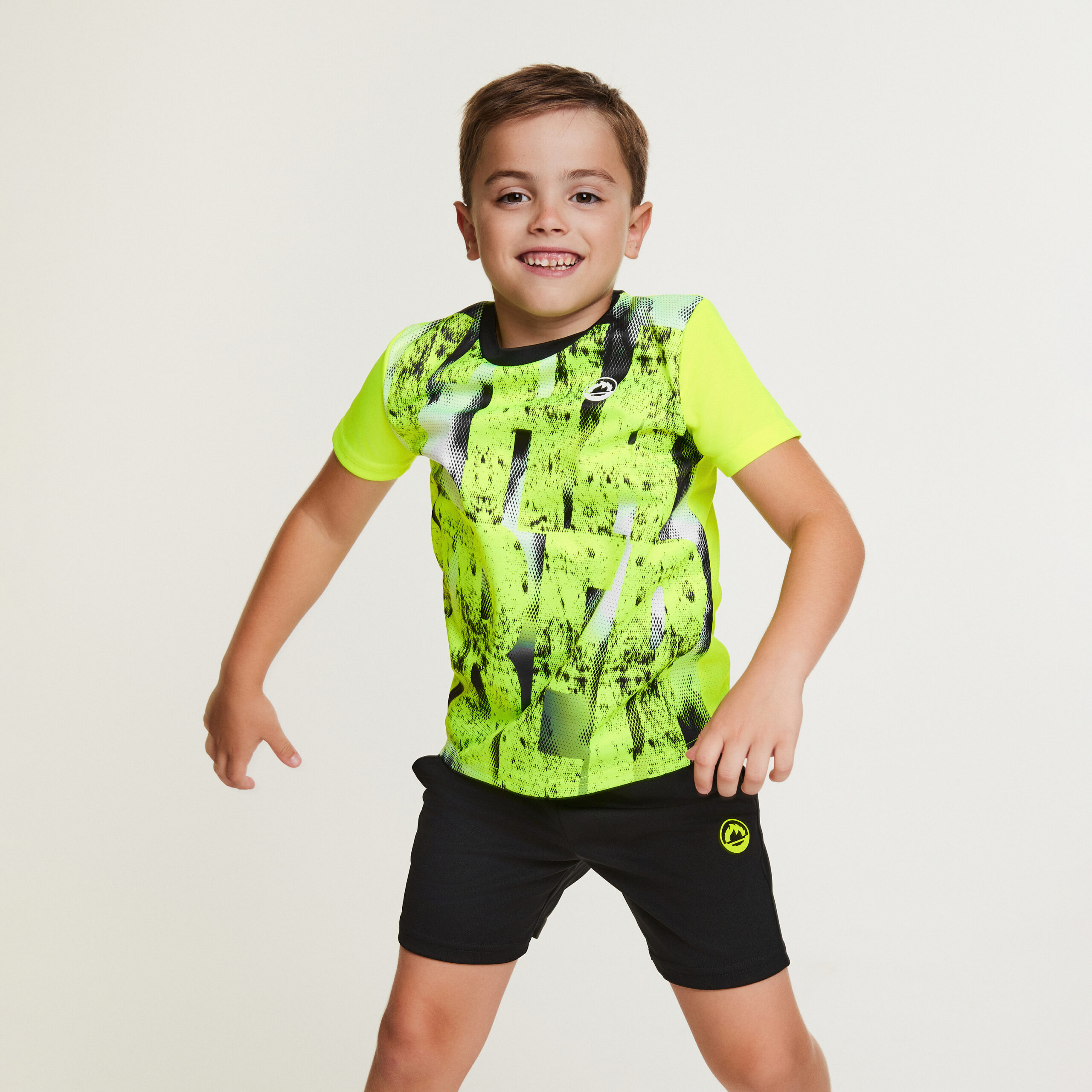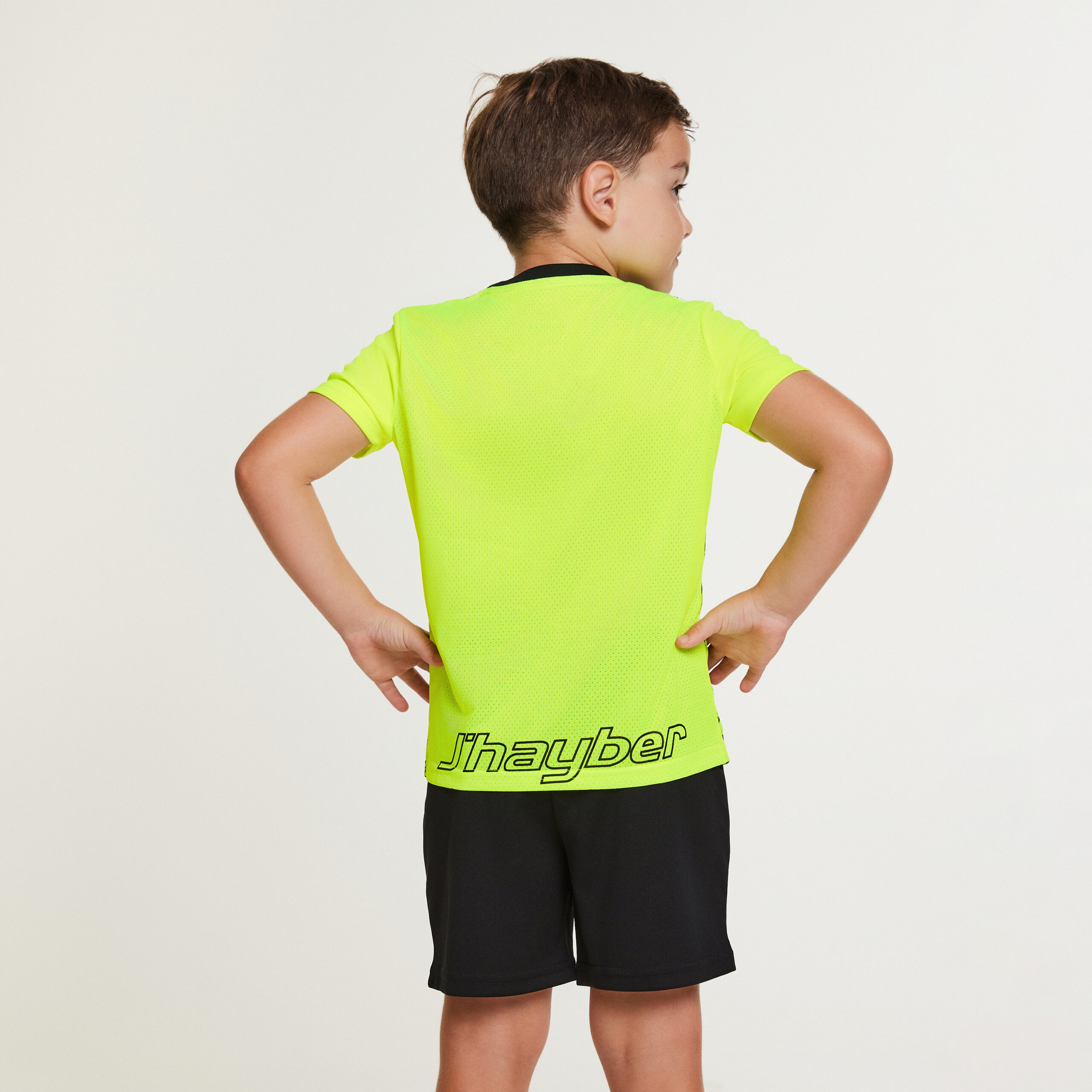 El conjunto Snake en amarillo está fabricado en 100% poliéster, ofreciendo comodidad y frescura. Su camiseta presenta un diseño moderno con estampado degradado, e incorpora un tejido transpirable en la espalda para mayor ventilación. Los pantalones, con bolsillos funcionales y cordón ajustable, garantizan un ajuste perfecto. Ideal para mantener a los peques cómodos en sus actividades diarias.