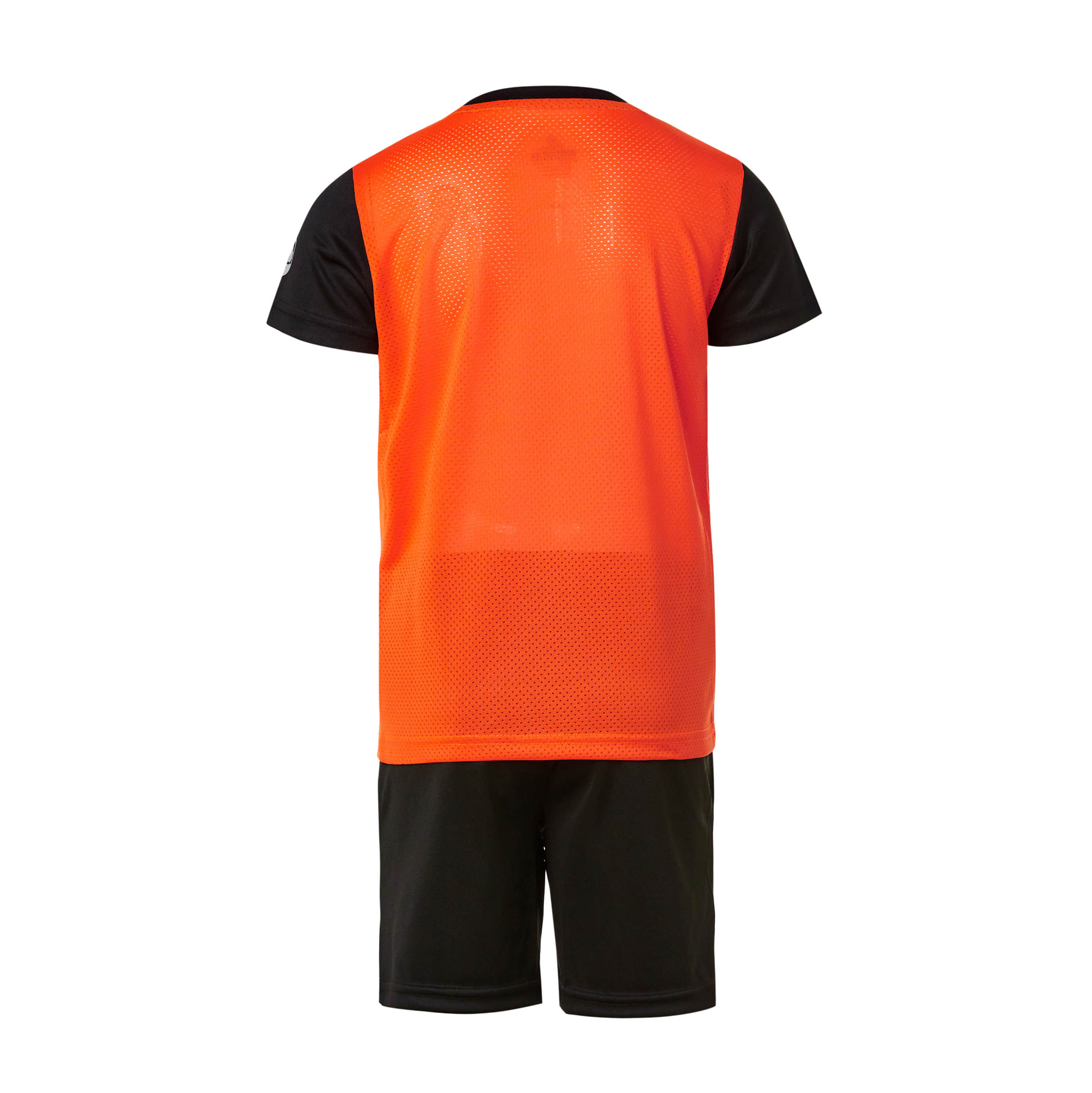 Conjunto deportivo para niño compuesto por camiseta y pantalón corto. CARACTERÍSTICAS CAMISETA Camiseta deportiva para niño en color naranja y negro, fabricada en tejido resistente y ligero. La camiseta está confeccionada con poliéster para garantizar su rápido secado, y con elastano, que favorece la elasticidad y flexibilidad, por lo que son perfectas para la práctica de todo tipo de deportes. Esta camiseta técnica está fabricada con la tecnología SINCRONIC, que evita arrugas y deformación en los tejidos. Otras características: – Cinta cubre costuras en el cuello para un contacto más suave con la piel. – Etiqueta de talla impresa en camiseta para evitar roces. CARACTERÍSTICAS PANTALÓN Pantalón corto de deporte para niño en color negro fabricado en tejido resistente y ligero. El pantalón está confeccionado con poliéster para garantizar su rápido secado, y con elastano que favorece la elasticidad y flexibilidad, por lo que con este pantalón de deporte tendrás libertad de movimiento. El pantalón, tiene un buen ajuste gracias al cordón interno en cintura, dos bolsillos laterales, y está confeccionado con la tecnología SINCRONIC, que evita arrugas y deformación en los tejidos. Fabricación: 100% Poliéster con elastano Tecnologías de los conjuntos deportivos J’hayber: – ADAPTEX: Facilita la adaptabilidad y la flexibilidad. Tejido ligero, anti-adherente y de secado rápido. – FLEXYDRY: Prenda con elastano, que favorece la elasticidad y flexibilidad, y poliéster, que garantiza su rápido secado. – SINCRONIC: Tecnología que evita arrugas y deformación de los tejidos. Prenda ligera con acabado perchado en su interior, que favorece el volumen y densidad. – WINDPROTEX: Tecnología que protege del viento y de la lluvia suave No se venden las prendas por separado.