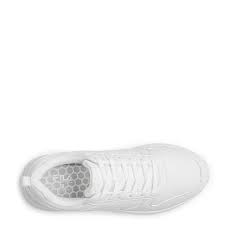 viscoelástica para mayor comodidad ofrecen un tacto suave y relajante. La parte superior de cuero sintético y la suela de goma ofrecen una pisada segura y un agarre que dura incluso en días lluviosos. Información • Cuero sintético suave en la parte superior • Ajuste regular • Tecnología Nanobionic RE-3 que ofrece mayor fuerza y ??recuperación a tus músculos • Plantilla de espuma viscoelástica para una caminata cómoda y relajante • Suela de goma para tracción y comodidad • Bolsillo en la lengüeta para fácil aplicación • Corbata con cordones Detalles Extra • Diseño: Fila • Color: blanco