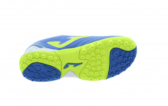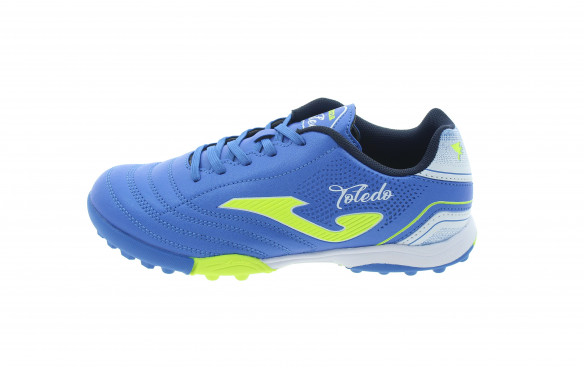La zapatilla JOMA TOLEDO JR 2304 ROYAL TURF es una zapatilla de fútbol turf para niña/o, para jugadores rápidos que quieran moverse con agilidad sintiéndose siempre cómodos y protegidos. CARACTERÍSTICAS TÉCNICAS: Fabricada con una sola pieza en Micro-PU, material sintético, ligero y resistente que promueve un buen tacto con el balón. Zona del talón reforzada Cuello de la bota y lengüeta ligeramente acolchada que aporta un plus de comodidad Cordones planos para un mejor ajuste Llamativo diseño en color azul con detalles en amarillo fluor La suela flexo es multitacos y tiene unas ranuras que le dan un plus de flexibilidad