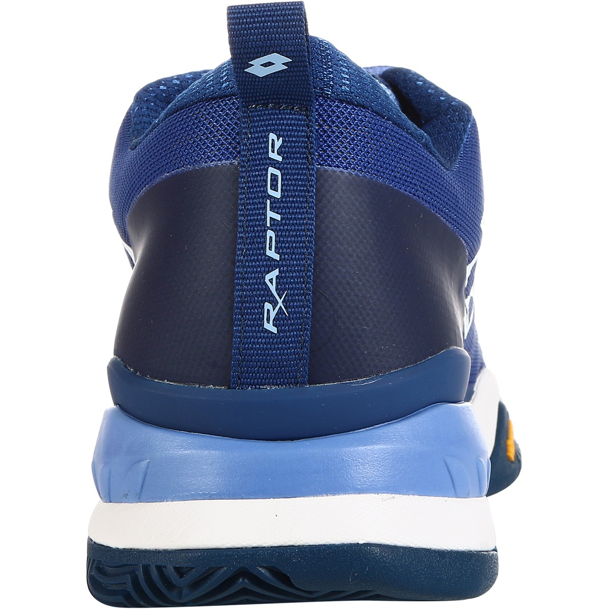 Soporte, estabilidad y amortiguación en la entresuela que proporciona un rebote extra! Esta versión está diseñada para su uso en pistas de tierra batida . El Lotto Raptor Hyperpulse 100 Clay es la actualización nueva y mejorada de la línea de zapatos Raptor con más amortiguación y durabilidad que nunca! La parte superior Multilayer Kurim permite que el zapato sea estable sin agregar peso y se amolda a tu pie para un ajuste rápido. Debajo del pie, el nuevo sistema Hyperpulse, hecho de una mezcla de EVA y ETPU con un diseño de hoja único, brinda una excelente amortiguación y comodidad en áreas específicas de los pies, enfocándose en la absorción de impactos y el retorno de energía para mantenerte en tu mejor forma durante todo el partido. Lotto también presenta la primera suela exterior Vibram en una cancha de tenis. Este material actualizado tiene una tracción y una durabilidad increíbles en la suela, y es un 30 % más resistente al desgaste que otras zapatillas de tenis en canchas de tierra batida . Parte superior: Parte superior Kurim multicapa para comodidad, soporte y transpirabilidad ligeros. Puntera antiabrasión. Entresuela: Hecha de una mezcla de EVA y ETPU con un diseño de hoja único, la nueva tecnología Hyperpulse proporciona amortiguación, apuntando a áreas específicas de los pies, rebote y comodidad para reducir el impacto de la cancha y se enfoca en el retorno de energía para mantener su movimiento rápido con cada paso. Suela: el nuevo compuesto de caucho Vibram garantiza una tracción increíble y un 30 % adicional de resistencia al desgaste en comparación con las suelas de tenis normales en canchas de tierra batida . Color: Royal Gem / Blanco / Azul