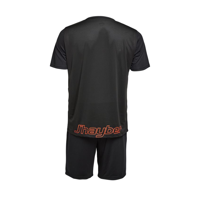 Conjunto deportivo para hombre compuesto por camiseta y pantalón corto. CARACTERÍSTICAS CAMISETA Camiseta deportiva para hombre en color blanco y negro con detalle verde, fabricada en tejido resistente y ligero. La camiseta está confeccionada con poliéster para garantizar su rápido secado, y con elastano, que favorece la elasticidad y flexibilidad, por lo que son perfectas para la práctica de todo tipo de deportes. Esta camiseta técnica está fabricada con la tecnología SINCRONIC, que evita arrugas y deformación en los tejidos. Otras características: – Cinta cubre costuras en el cuello para un contacto más suave con la piel. – Etiqueta de talla impresa en camiseta para evitar roces. CARACTERÍSTICAS PANTALÓN Pantalón corto de deporte para hombre en color negro fabricado en tejido resistente y ligero. El pantalón está confeccionado con poliéster para garantizar su rápido secado, y con elastano que favorece la elasticidad y flexibilidad, por lo que con este pantalón de deporte tendrás libertad de movimiento. El pantalón, tiene un buen ajuste gracias al cordón interno en cintura, dos bolsillos laterales, y está confeccionado con la tecnología SINCRONIC, que evita arrugas y deformación en los tejidos. Fabricación: 100% Poliéster con elastano Tecnologías de los conjuntos deportivos J’hayber: – ADAPTEX: Facilita la adaptabilidad y la flexibilidad. Tejido ligero, anti-adherente y de secado rápido. – FLEXYDRY: Prenda con elastano, que favorece la elasticidad y flexibilidad, y poliéster, que garantiza su rápido secado. – SINCRONIC: Tecnología que evita arrugas y deformación de los tejidos. Prenda ligera con acabado perchado en su interior, que favorece el volumen y densidad. – WINDPROTEX: Tecnología que protege del viento y de la lluvia suave No se venden las prendas por separado.