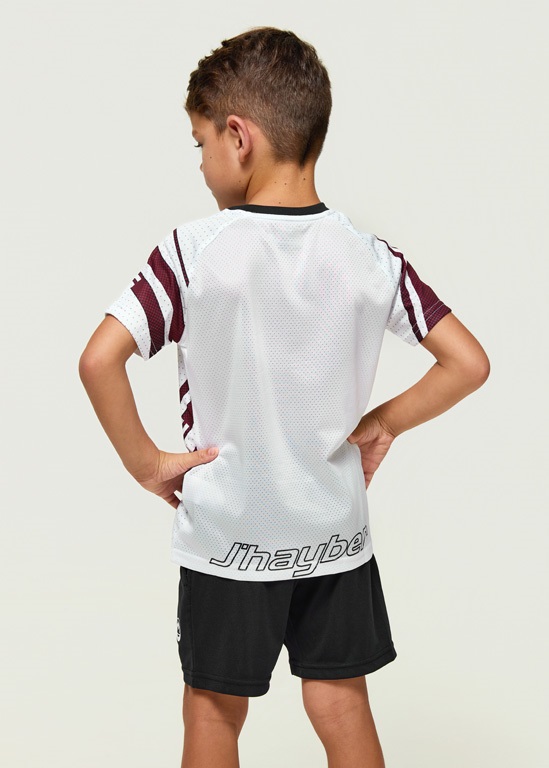 El conjunto Court en color blanco destaca por su camiseta con diseño gráfico en burdeos sobre base blanca, creando un estilo técnico y moderno. La camiseta está confeccionada con tejido mesh, altamente transpirable para mantener la frescura durante la actividad. Ideal para practicar cualquier deporte o para el día a día, gracias a su espalda transpirable, y al pantalón negro con bolsillos, cintura elástica y cordón ajustable para un ajuste cómodo. Composición 100% Poliéster.
