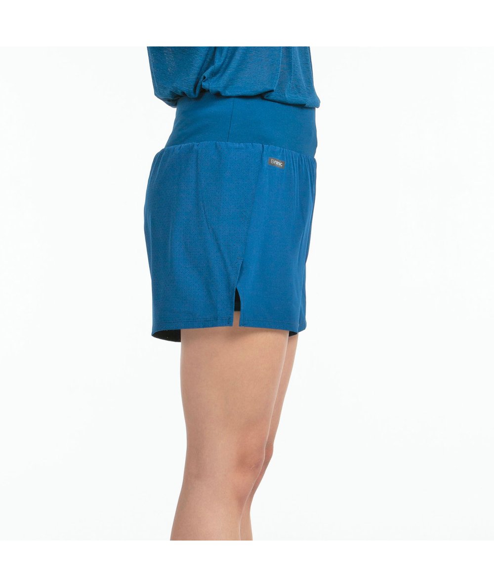 Pantalón con cinturilla ajustable con cordón, malla interior y parte trasera en tejido a la plana con semi perforaciones. Fabricado en tejido de jersey de poliéster elástico y tejido a la plana de poliéster elástico en dos direcciones. Se le aplica la calidad Binamic se garantiza la flexibilidad y ligereza de un buen tejido bielástico, proporcionando una gran libertad de movimiento en dos direcciones, integrando también el acabado de secado rápido que utiliza los microfilamentos para reducir la humedad y ayudar a la transpiración. Lleva la etiqueta de Delfi Brea 86% POLIESTER-14% ELASTAN, ELASTIC JERSEY