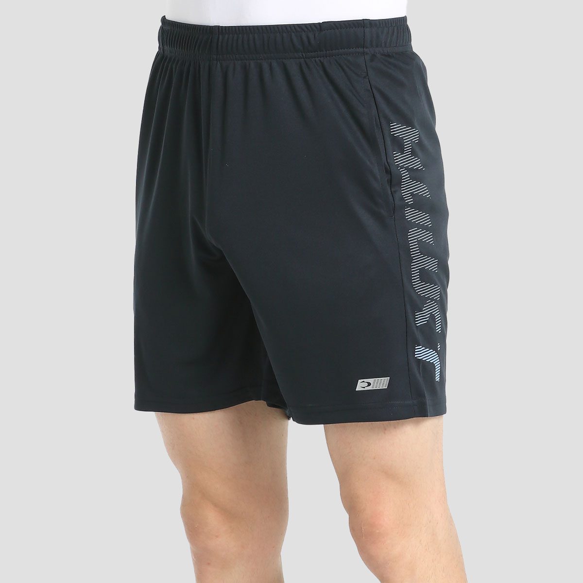 DESCRIPCIÓN Bermuda de interlock poliéster, con gráfico en el lateral y logotipo en reflectante en el delantero. Cinturilla elástica con cordón y bolsillos en costuras laterales. Se le aplica el acabado Quickerdry, tejido con extraordinario rendimiento en absorción del sudror. Composición: 100%