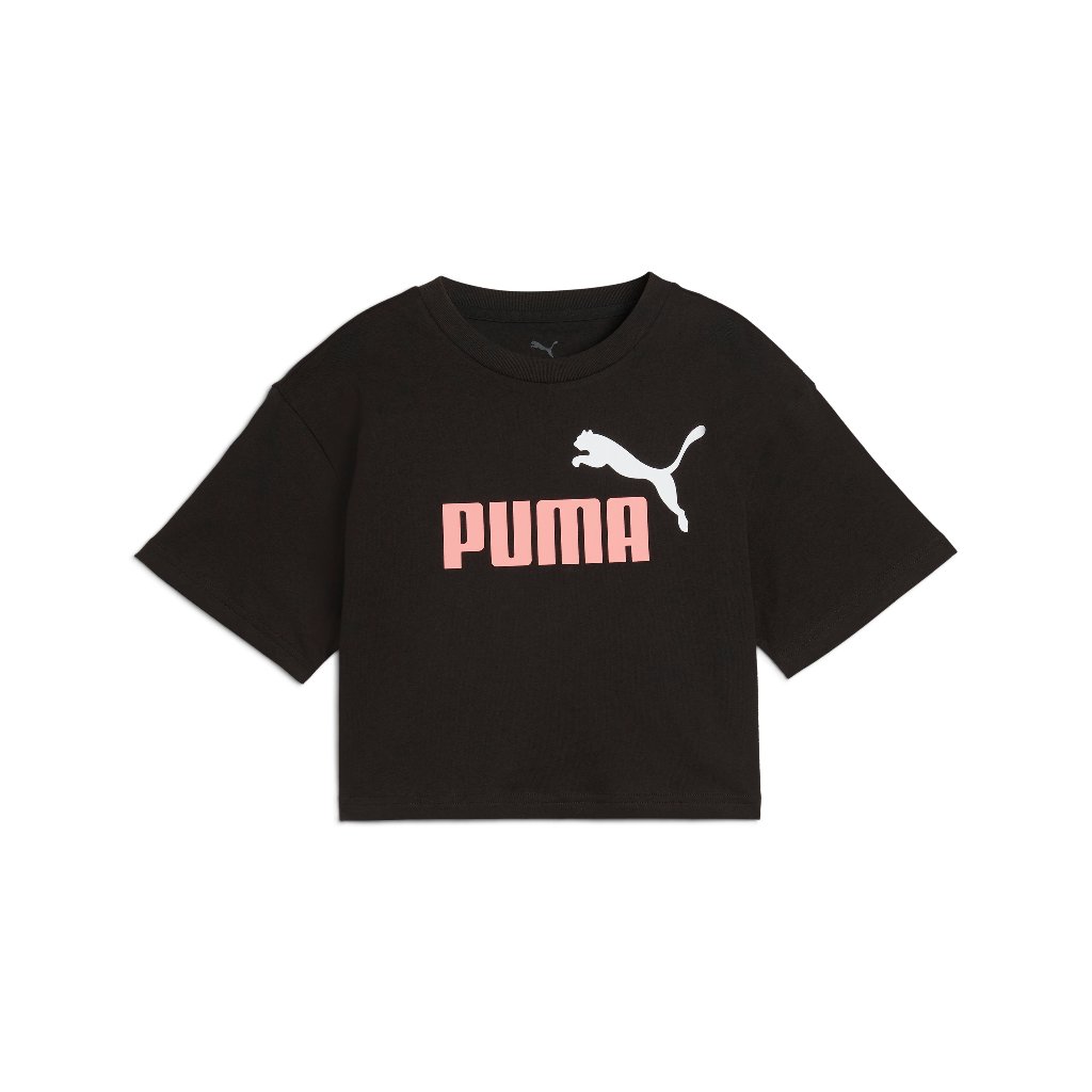 Cómoda camiseta de algodón fácil de combinar para tus outfits. Cuello redondo y acanalado. Logo Puma estampado en el pecho en color rosa y blanco. Fabricada con al menos un 20 % de algodón reciclado. Materiales: 80% algodón, 20% poliéster.