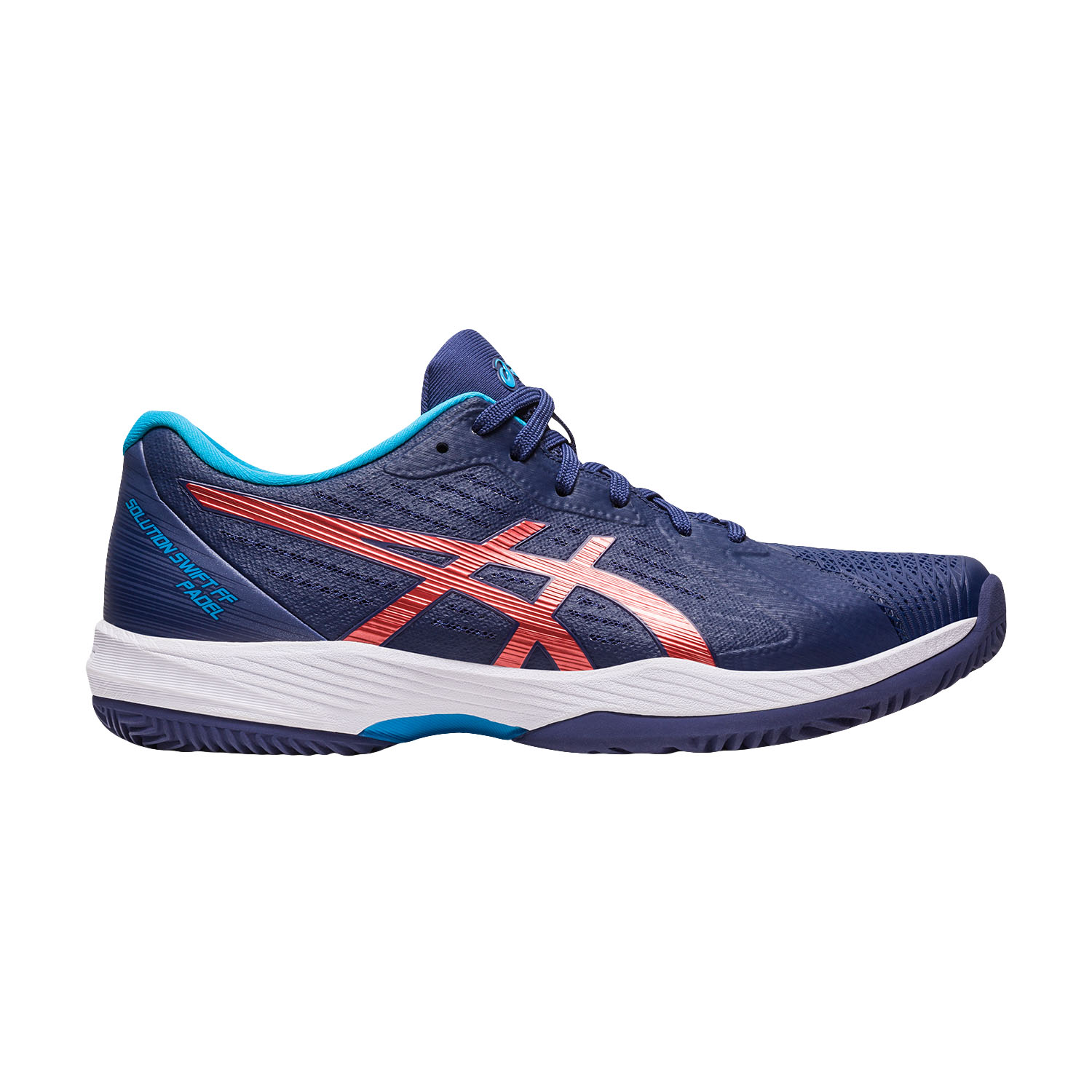 Asics Solution Swift FF Padel son las zapatillas de pádel para hombre, ligeras y rápidas, diseñadas para jugadores de todo tipo que realizan movimientos rápidos y ágiles. Detalles: Tecnología DYNAWALL en la zona medial que envuelve el pie para ofrecer estabilidad en los cambios de dirección La estructura DYNAWRAP presenta inserciones en la parte superior que envuelven el pie Tecnología PGuard en la puntera y parte medial que ofrece protección Pivot Point en el antepié que favorece rotaciones de 90 o 180 grados Suela con tecnología X Groove específica para pádel con profundos surcos de flexión en el antepié que facilitan los movimientos rápidos Suela que no deja marcas Suela interior extraíble TWISTRUSS La tecnologia TWISTRUSS ha sido proyectada para dar un cambio de direccion mas rapido sin hacer perder velocidad a los jugadores. Las hendiduras de la exclusiva estructura trusstic mejoran las torsiones internas manteniendo un peso ligero. FlyteFoam La tecnologìa FlyteFoam, creada con fibras reforzadas, garantiza una amortiguacion ligera y continua. Court Specific FlyteFoam, material de la entresuela, es casi un 35% mas ligero respecto al material entresuela industrial standard y de un 10% mas duradero respecto a la entresuela FlyteFoam para las zapatillas de correr. Rearfoot Gel Asics Gel es un sistema de amortiguación que emplea la silicona para responder a la necesidad de los atletas tanto profesionales como diletantes. Rearfoot Gel ofrece amortiguación en toda dirección, absorbe los choques y ayuda a estabilizar el pie durante el impacto del talón. Forefoot Gel Asics GelL es un sistema de amortiguación que emplea la silicona para responder a la necesidad de los atletas tanto profesionales como diletantes. Forefoot Gel reduce las fuerzas de cargo durante el empuje, mejorando el rendimiento y reduciendo considerablemente el riesgo de accidentes. AHAR Asicas Hig Abrasion Resistance Rubber (AHAR) es una goma dura y compuesta usada en las zonas de mayor impacto de la suela, como el talòn. FLEXION FIT La tecnologia FLEXION FIT de ASICS incorporada sobre la parte superior anterior garantiza un ajuste excepcional y adecuado durante el movimiento y comodidad durante el juego.