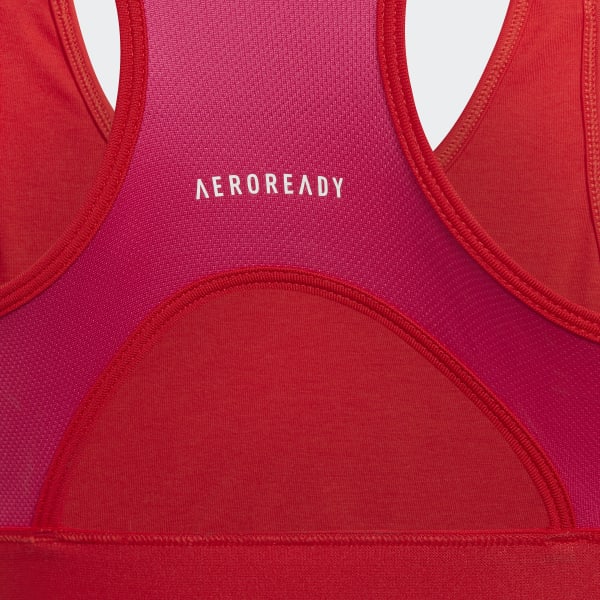 TOP SUJETADOR DESIGNED 2 MOVE CONFORT Y ESTILO Olvídate de tener que cambiarte muchas veces a lo largo del día. Saca partido a la versatilidad de este top sujetador para jóvenes deportistas. Su diseño te brinda un ajuste cómodo y una sujeción óptima. Combínalo con tu camiseta de tirantes favorita o llévalo solo para que el logotipo de adidas en contraste sea toda una declaración de intenciones. Este producto se ha fabricado con Primegreen, una combinación de materiales reciclados de alto rendimiento. DETALLES Corte ajustado Escote redondo Punto 91% poliéster reciclado / 9% elastán Panel trasero de tejido suave Tejido transpirable Diseño estampado en la parte frontal Espalda deportiva con abertura Primegreen Color del artículo: Vivid Red / Team Real Magenta / Vivid Red Número de artículo: GT1411