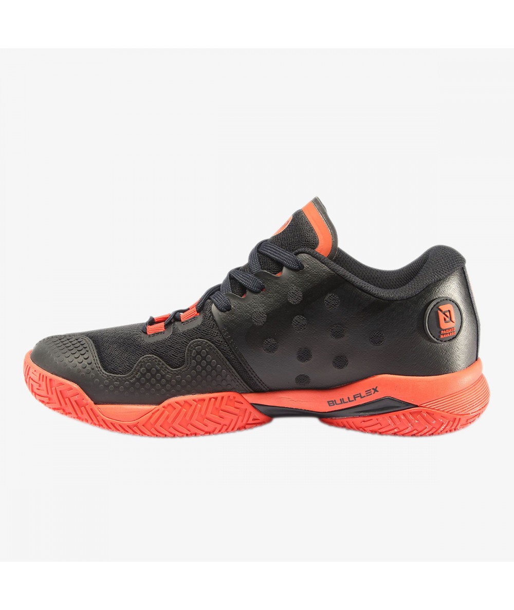 Zapatilla seleccionada por Paquito Navarro, está concebida para jugadores profesionales o avanzados. Números: 40-46 Peso: 370 grs. (nº41) Color: antracita.