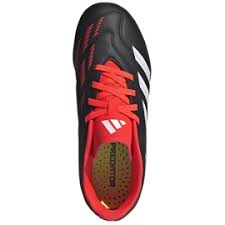 GANAR ES EL TRATO La victoria se gesta gol a gol. Esta zapatilla de fútbol se ha diseñado para que siempre llegues a la portería rival, y lo más importante: para que nunca falles. Alcanza la perfección con la nueva adidas Predator. Diseñada para jóvenes promesas, presenta una parte superior sintética con una capa de espuma e inserciones Strikeprint en el mediopié que te proporcionan un mayor confort y un control absoluto del balón. La suela de goma estriada te permite estar siempre en la posición óptima para superar al guardameta. Este producto contiene al menos un 20% de materiales reciclados. Utilizando materiales reciclados, reducimos los residuos, nuestra dependencia de los recursos finitos y la huella que generan los productos que fabricamos. Horma clásica Cierre de cordones Parte superior sintética con inserciones Strikeprint para un mayor agarre Forro textil Suela de goma para campos de moqueta Contiene al menos un 20% de material reciclado Color del artículo: Core Black / Cloud White / Solar Red Número de artículo: IG5437