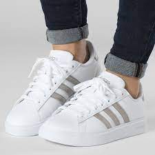 ZAPATILLAS ICÓNICAS PARA USO DIARIO, HECHAS PARCIALMENTE CON MATERIALES RECICLADOS Hay tendencias y luego hay tradiciones. Estas zapatillas adidas Grand Court han dejado atrás a las canchas y las pasarelas. Ahora no hay colección que no esté completa sin ellas. La amortiguación Cloudfoam Comfort mantiene tus pies cómodos y sujetados, mientras que la silueta clásica combina a la perfección con todos los atuendos. Hecha con una serie de materiales reciclados, esta parte superior incorpora al menos un 50 % de contenido reciclado. Ajuste clásico Sistema de amarre de pasadores Exterior de cuero sintético Plantilla Cloudfoam Comfort Forro interno textil Suela de caucho La parte superior contiene al menos un 50% de material reciclado Color del artículo: Cloud White / Platinum Metallic / Platinum Metallic Número de artículo: GW9215